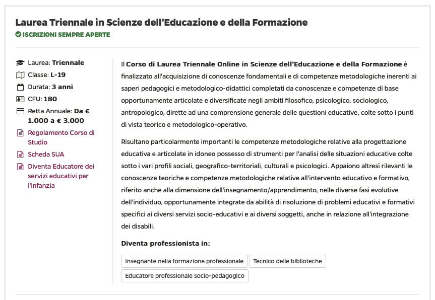 L’Università Telematica Pegaso si impegna a offrire una vasta offerta formativa comprensiva di corsi di laurea triennali e magistrali online riconosciuti a livello accademico in grado di coprire le esigenze educative dello studente universitario moderno.
